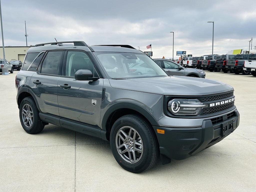 The 2026 Ford Bronco Sport Big Bend boasts a rugged and stylish exterior that's sure to turn heads. The Carbonized Gray Metallic paint finish exudes sophistication, while the 17-inch gray aluminum wheels add a touch of sporty flair. The black front and rear bumpers and gray grille contribute to the vehicle's distinctive look, and the integrated roof antenna provides a clean and aerodynamic profile. The LED headlights offer enhanced visibility, while the roof rails provide added versatility for carrying cargo. Check out our New Inventory today!