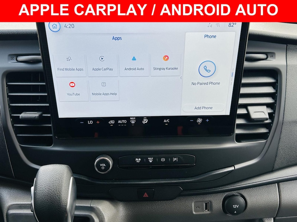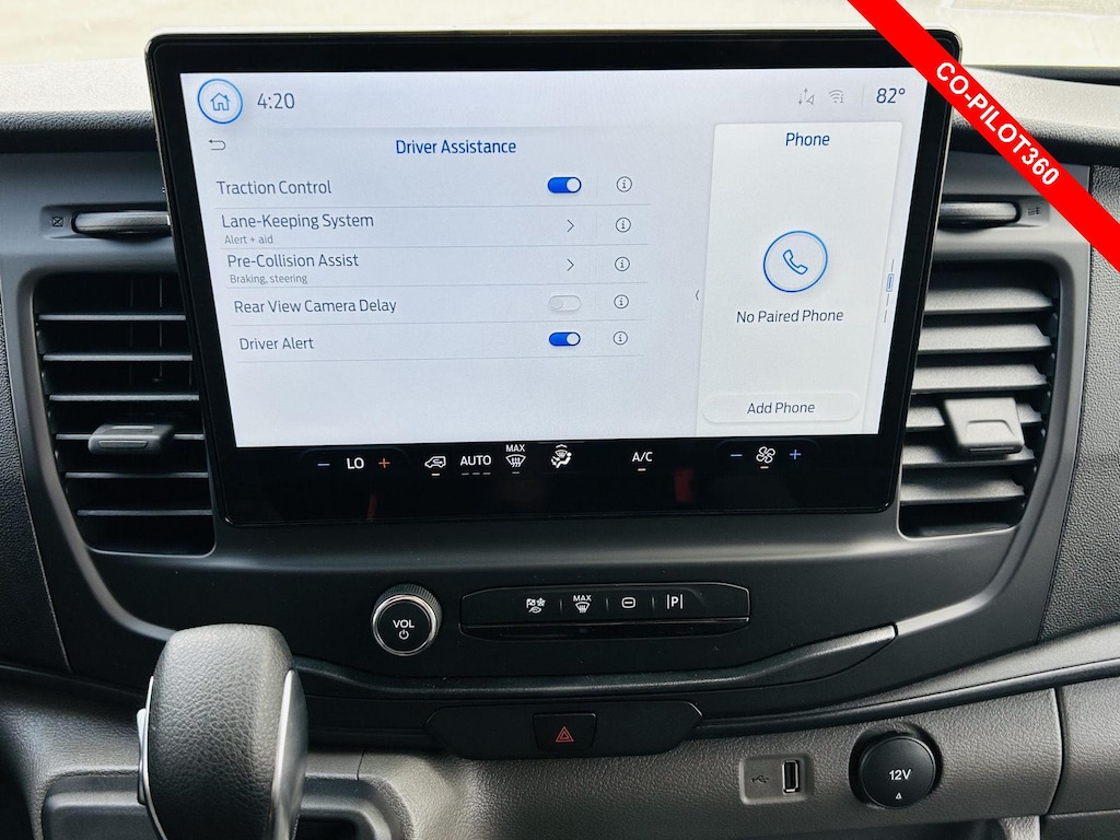 Stay connected and informed on the go with the advanced technology features of the 2026 Ford Transit-250. The 12-inch primary display with touchscreen functionality serves as your command center, providing intuitive access to navigation, entertainment, and vehicle information. Seamlessly integrate your smartphone with Apple CarPlay and Android Auto, allowing you to access your favorite apps, make calls, and send messages hands-free. The Connected Navigation integrated navigation system ensures you always find the most efficient route to your destination, with Real-Time Traffic Display to help you avoid delays. The SYNC 4 with Enhanced Voice Recognition enables you to control various functions with simple voice commands, keeping your focus on the road. Stream your favorite music and podcasts via Bluetooth wireless audio streaming, and stay connected with clients and colleagues using the handsfree Bluetooth connectivity. Two USB ports are conveniently located to keep your devices charged and ready to go. The available Ford Connect 5G mobile hotspot keeps you connected to the internet, enabling you to stay productive and informed wherever your work takes you.